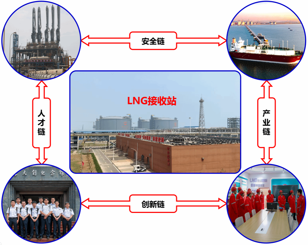 “一站四链”是指基于液化天然气接收站,通过安全链、产业链、人才链和创新链开发教学体系和教学方法。