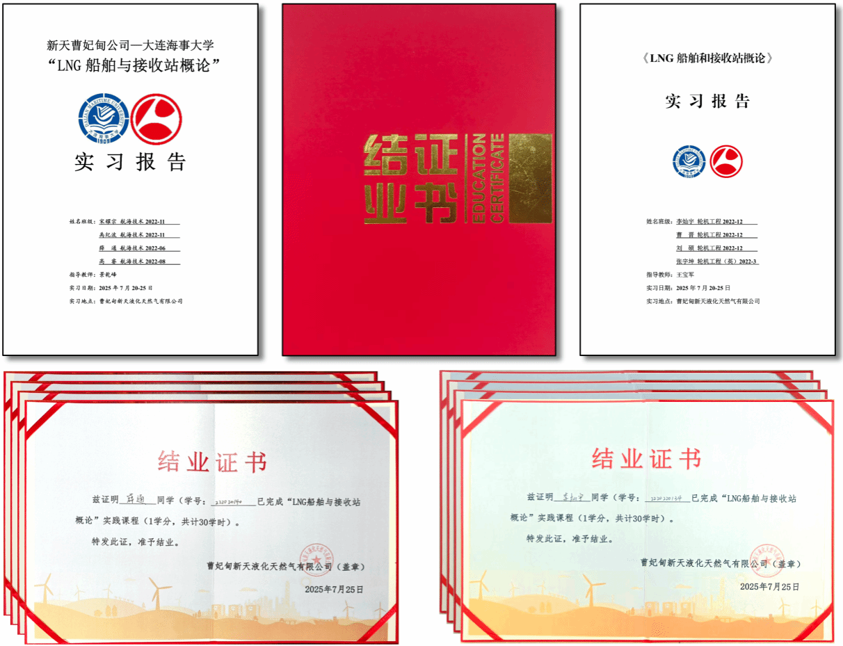 全体同学顺利完成课程学习,分专业撰写了详实的《实习报告》。经校企教师评定,8名同学《LNG船舶和接收站概论》课程成绩优良,公司向同学们颁发了《结业证书》。